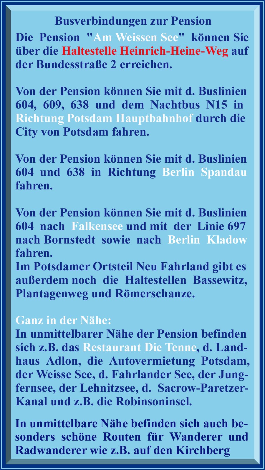 Die Pension "Am Weissen See" in Potsdam befindet sich an einem der schönsten Ufergärten am See und für unsere Gäste stehen viele Sitzgruppen im Garten zur Verfügung![]() |